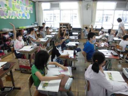 国語の時間には,「1つの花」という教材を読みました。題名からどんなお話か想像した後,どんな人が出てくるのか各自で読み取りました。分かった人がたくさんいました。