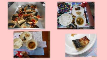 魚の皮が苦手という子もいました。「身と一緒に食べるとおいしいよ」「少しずつ食べられるようになってね」と声をかけています。また,おうちでもお魚のときには,声をかけてあげてください。