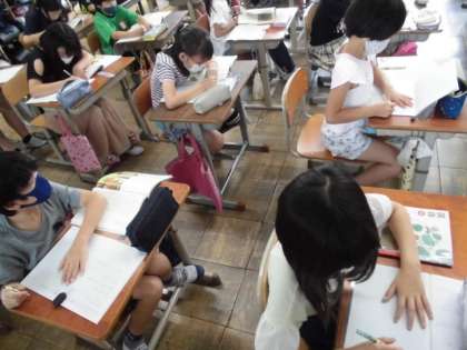 国語の時間には,戦争中の様子について読み取りました。戦争中の出来事や食べ物から今の暮らしとずいぶん違うことに気づき,いろんな感想をもっていました。