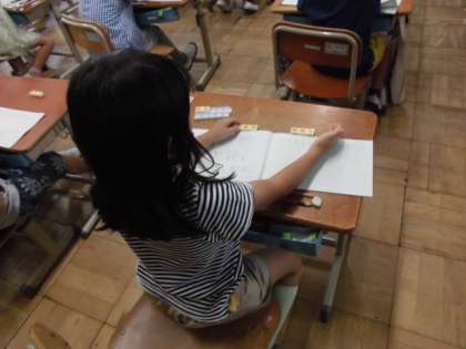 算数の時間には,あわせていくつになるか求める時は,どんな式になるか考えました。ケーキを合わせるといくつになるのか,数図ブロックを使って丁寧に考えました。
