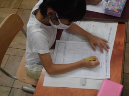 明日は学校探検を予定しています。2年生は1年生を連れて行くので,今日は,どこを回るか,どんな順番で回るかを相談しました。1年生にとってどんな教室か分かるように説明する内容も考えました。
