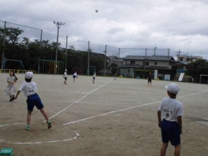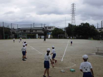 今日の体育では,ソフトボール投げと立ち幅跳びに挑戦しました。遠くに投げれるように斜め上を見て投げたり遠くに跳べるようにしっかり腕をふったりしていました。