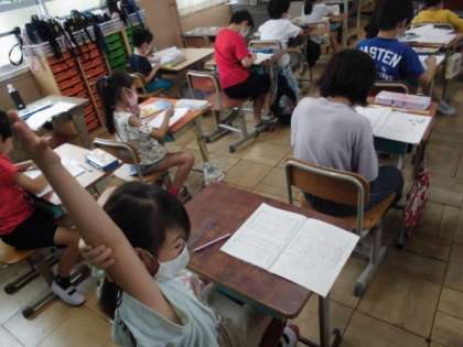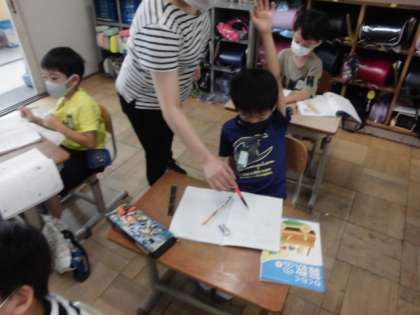 今日は問題から式を考えた後,答えが合っているのかたしかめの式について学習しました。練習問題では,学習したことをもとに式を立てることができました。