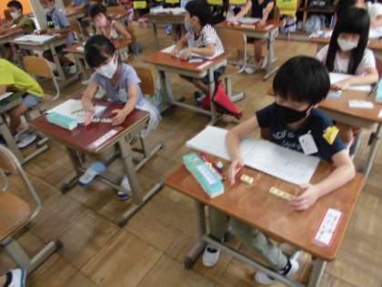 算数では,ふえるといくつになるのか問題文からブロックを並べて考えていました。操作の仕方もきちんと声に出して確認しながら動かしていました。
