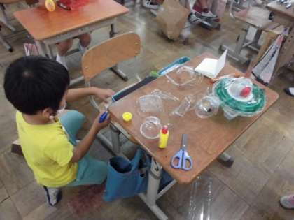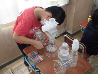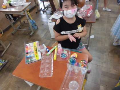 マジックを使って色を塗ることで,どんなものを作っているのか分かりやすくなる上,透き通った感じがとてもきれいでした。