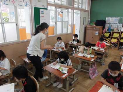 今日は,計算カードを使って,計算名人を目指しました。カードに書いてある式を読み上げながら答えも考えるようにすることで,スムーズに計算ができていました。