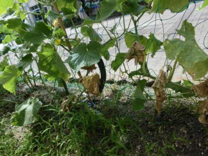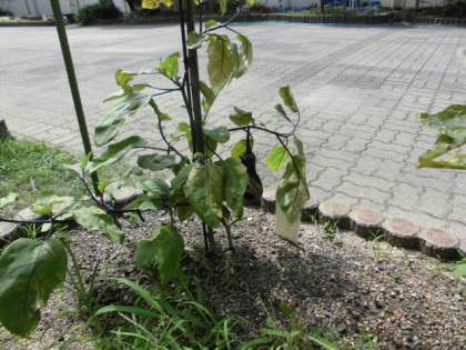 中庭で育てている野菜の花がきれいに咲いた後,よく見ると,実ができていました。ナスやキュウリ,オクラ,トマトなどが実際にどのように実がつくのかよく分かります。中庭を通る時,気にかけてみている子もたくさんいます。
