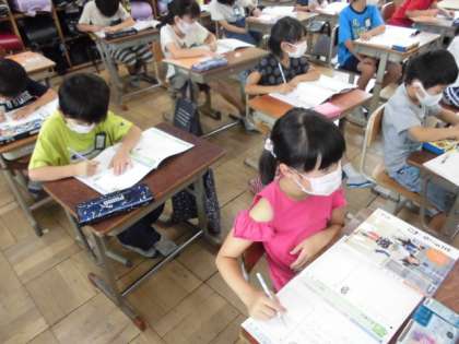 道徳の時間には,教材文から校歌に込められた願いを知ることで,自分たちの学校の校歌にもきっと願いが込められていると考え,これからどのように歌えばいいか話し合いました。