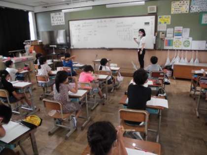 今日の算数では,10倍にした数について考えました。10倍すると位が移動することや「0」の数が増えること等を知りました。位をそろえて書くことで分かりやすいと気づいていました。