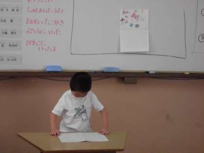 夏休みにあった出来事をクラスで発表しました。例年より短かったけど,それぞれに思い出ができたようで,自分の発表する順番を心待ちにしていました。