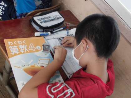 今日の算数では,直角ができる時の交わり方を調べました。三角定規の90度の部分を直接当てて直角になっているかどうか調べました。直角と分かった部分には,印をつけていました。
