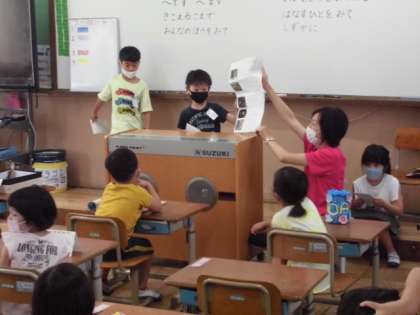 2時間目には,夏休みにがんばってきた自由課題のことを発表しました。絵日記を書いたり工作をしたりいろんながんばりが見られました。自分の言葉で発表する経験も積み上げていきたいです。