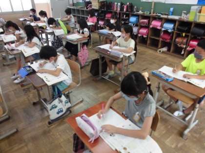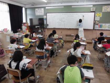 今日の算数では,好きな給食調べの結果を表やグラフに表すことで,ひと目で人数の違いや一番人気が分かることに気づきました。また,1目盛りの大きさが1ではないグラフについても学習しました。