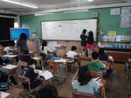 今日の算数では,合同な図形から対応するへんの長さや角の大きさについて調べました。回転した図形では分かりにくいこともありましたが,長さや大きさが等しくなることが分かりました。