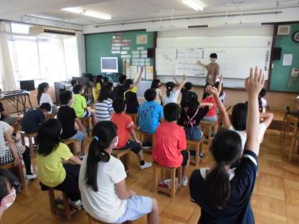 音楽の時間には,「いつでもあの海は」という曲を学習しました。曲を聴きながら情景を思い浮かべたり1番と2番の歌詞の違いに着目したりしていました。