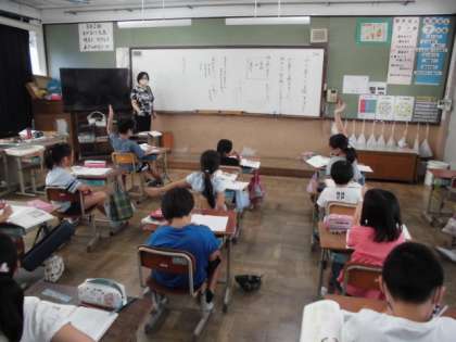 山小屋で過ごすために「着替え・水・食料」のほか,あと5つ持っていけるとしたら何を持って行くか,山小屋に行ってやりたいことをもとに必要なものを考えていました。星空観察やキャンプファイヤー,魚釣りなど自然の中だからこそできることを発表していました。