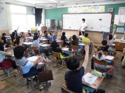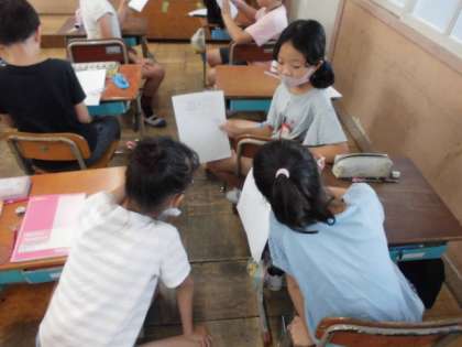 算数の時間には,学習したことをもとに平行四辺形や台形をかきました。向かい合う辺が並行であることや長さが同じものがあることなどを使ってかきました。その後,出来上がった図形を友達と見せ合い,できているか確認しました。図形の特徴を覚えていると,コンパスや定規,分度器を使っていろんな図形が描けるので覚えておいてほしいです。