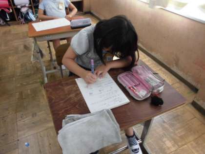 今日は「G]と「Z]が使われる「ガ行」と「ザ行」の言葉を一緒に学習しました。書き慣れないアルファベットを丁寧に書くことができました。