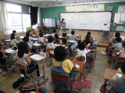 リズムに合わせて手拍子で演奏しました。自分だけでリズムをとるのではなく,同じパートの人と音を合わせなければなりません。相手と呼吸を合わせ,曲をよく聞きながら手をたたいていました。