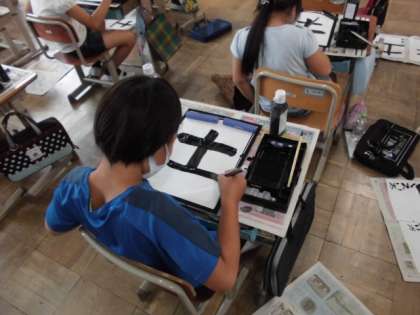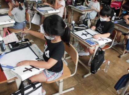 筆を力強く元気いっぱいに動かして「土」という字を書きました。出来上がった自分の字を見て,納得している子もいれば,反省している子もいました。ひと筆にこだわって書いている姿を見て,とても嬉しかったです。