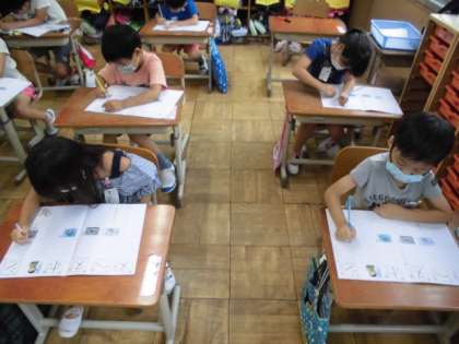 今日は,「シ」と「ホ」を学習しました。ショベルカーやシーチキンなどみんなが知っている「シ」のつく言葉を発表していました。その後,書き順を確認してから,丁寧に練習しました。ちなみに「ホ」のつく言葉では,ホッキョクグマやホースが出ました。