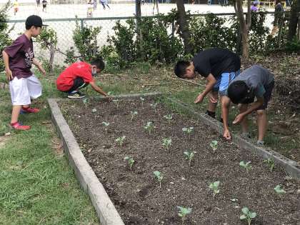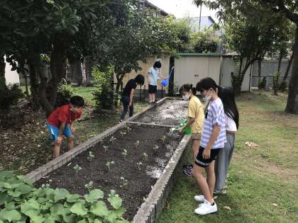 「植えた時より大きくなっている」,「葉の数が増えた」と早速ブロッコリーの成長に気が付きました。
