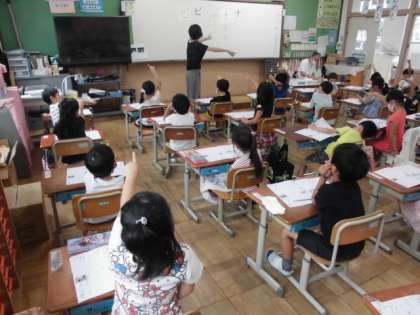 「ピ」と「ナ」を学習しました。いつものように今日学習するカタカナが使われている言葉を探しました。「ピーナッツ」や「バナナ」など使われてる言葉を見つけた後は,何度もなぞって練習しました。特に「ピ」の一画目に気を付けることを知りました。