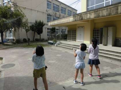 筒の中に空気を閉じ込めてから押し込むと先のスポンジが飛び出します。人がいないことを確認してから友達とどれくらい飛ぶか試していました。直接,棒で押しているわけではないけど,空気に押されて飛び出す様子がよく分かりました。