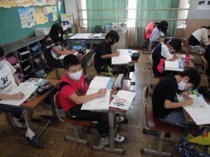 教科書を読んで想像した五月の谷川の情景をノートに描きました。いろんなものが出てきますが,ノートに整理すると,どんな様子なのか分かってきました。