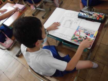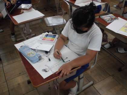 自分にとってこんなものがあったらいいなと思うものを想像して,みんなに紹介するために画用紙に描きました。絵も大きく書くことができ,話すための原稿もばっちりです。実際に使ってみたいなと思うようなものがたくさんありました。