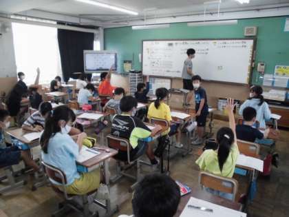 今日は,倍数について学習しました。3人1組で考えていると3ずつ増えていることに気づき,そういった数を3の倍数ということ知りました。また,2や4の倍数についても考えました。