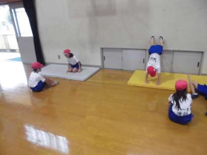 壁を使って逆立ちしたり坂道を作って前回りしたりと,いろんな場でいろんな動きをしながら楽しみました。