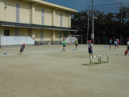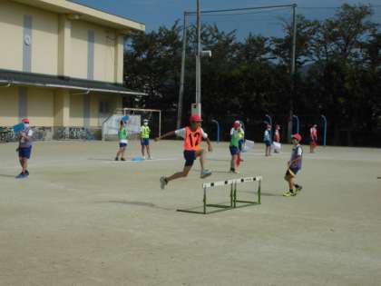 学習の場が準備できたら,自分のめあてをもって挑戦です。記録やスタート,ハードル直しなどの役割を順番に交代しながら,みんなが真剣に挑戦できる雰囲気づくりも大事にして取り組んでいました。