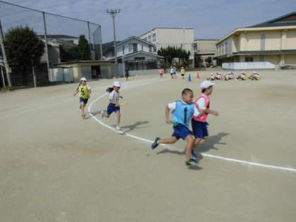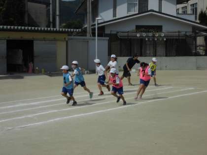 スムーズなバトンパスができるように声をかけ合ったり走り出しのタイミングをはかったりして練習を積み重ねています。「バトンをつないでくれる」と仲間を信じることも大切です。