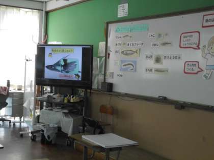 4校時,3組さんで,「さかなとなかよくなろう」をテーマに栄養教諭も入り,学習しました。