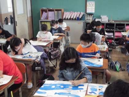 お話の絵ももうすぐ完成です。絵の具を使って最後まで丁寧に色塗りをしています。