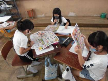 スーパーにはたくさんの品物があるけれど,どこから届いているのか調べました。折り込み広告をよく見ると,○○産と表記されているので,どこで作られたのか分かります。群馬県産や福岡県産など日本地図で位置を確認してから記入していくと「北海道からたくさん届いているなあ」と気づいていました。