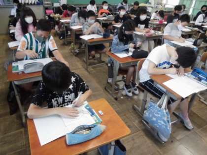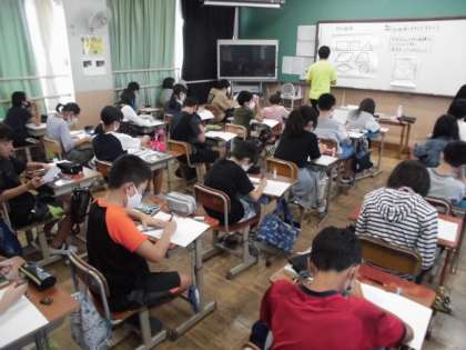 これまで長方形や台形,平行四辺形などいろいろな図形の面積を求める公式を学習してきました。今日は「円」について正方形をもとにどのくらいの大きさか見当をつけました。