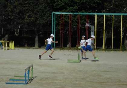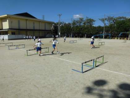 目の前にハードルが迫ってくると,引っかかることが気になって上へ跳んでしまいます。できるだけ姿勢を低くして走り抜けられるように意識して取り組んでいました。
