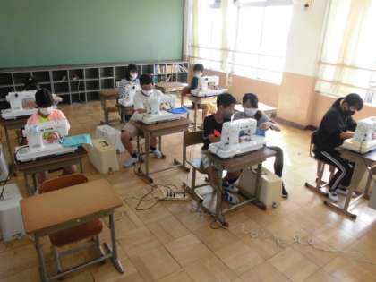 口あきどまりの部分をなみぬいしました。針に糸を通すことにも慣れてきて,丁寧にぬうことができました。ふくろの横など長い部分はミシンを使ってぬいました。