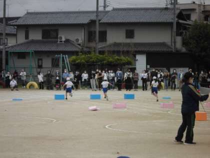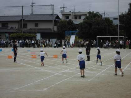 2年生のとびあそび走です。リズムよく3つの箱を跳び越えながら走り切りました。