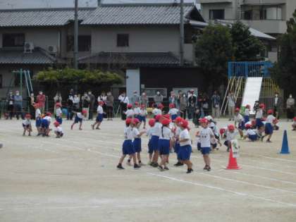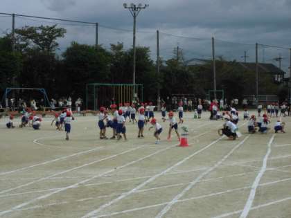 1年生の表現運動です。カマキリやあり,チョウなどの虫になり切って,体で動きを表現していました。