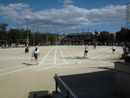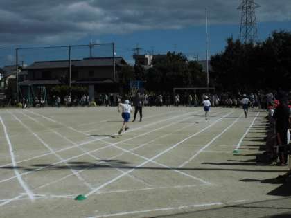 午後からは高学年です。5年生の100m走から始まりました。しっかり準備運動をして体をほぐしてからスタートしました。