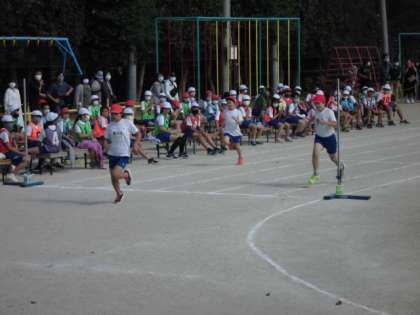 6年生も100m走をしました。学年が1つ上がるとまたスピード感が違い,ずいぶん速く走れるようになっていました。ゴールまで全力を出し切る姿が良かったです。