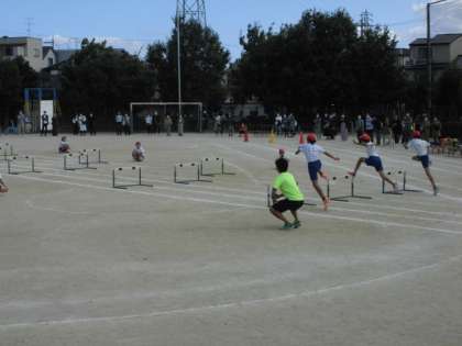 本日最後の種目は,6年生のハードル走です。これまで自分のめあてをもって練習に取り組んできました。その成果を出そうと,ベストタイムが出せるように全力で走りました。