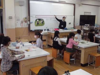 動物はどんなところで過ごしているのか学習を振り返りました。植物や土の中をすみかにして自然と関わり合って生きていることが分かりました。