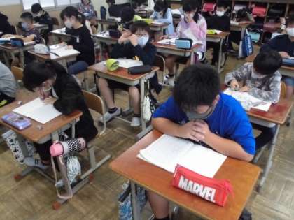 物語を読んで,自分の気持ちや考えにどんな変化があったかノートに書きました。戦争について考えを深め,平和な世の中がいいと改めて感じていました。中には,ノート1ページにびっしり書いている子もいました。