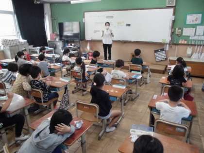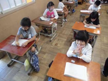 左に7匹います。右に3匹いるので合わせてから,8匹降りたので減りました。ブロックを使って繰り返し操作した後,ノートに式を書きました。自分で操作したことによって,どんな順番で計算したのかよく分かっていました。