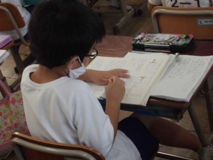 「九」という漢字には,「九月(くがつ)」「九つ(ここのつ)」「九さい(きゅうさい)」というふうにいくつかの読み方があります。同じように「上」や「下」についてもいろんな読み方があることを知りました。