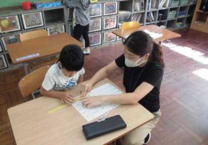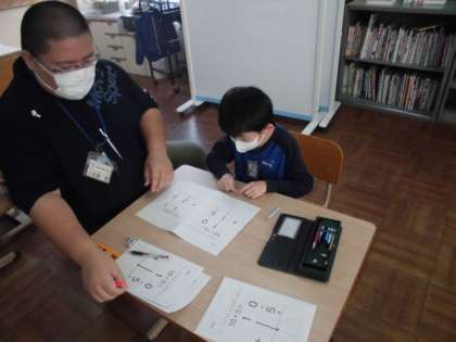 たし算やひき算,数字の並び方など,自分にあった問題に取り組んでいました。できた人は,先生に見てもらいました。